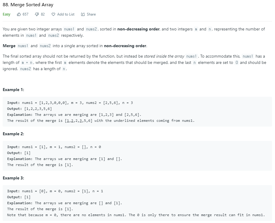 문제 출처: https://leetcode.com/problems/merge-sorted-array/