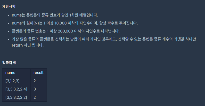 코딩테스트 연습 - 폰켓몬
