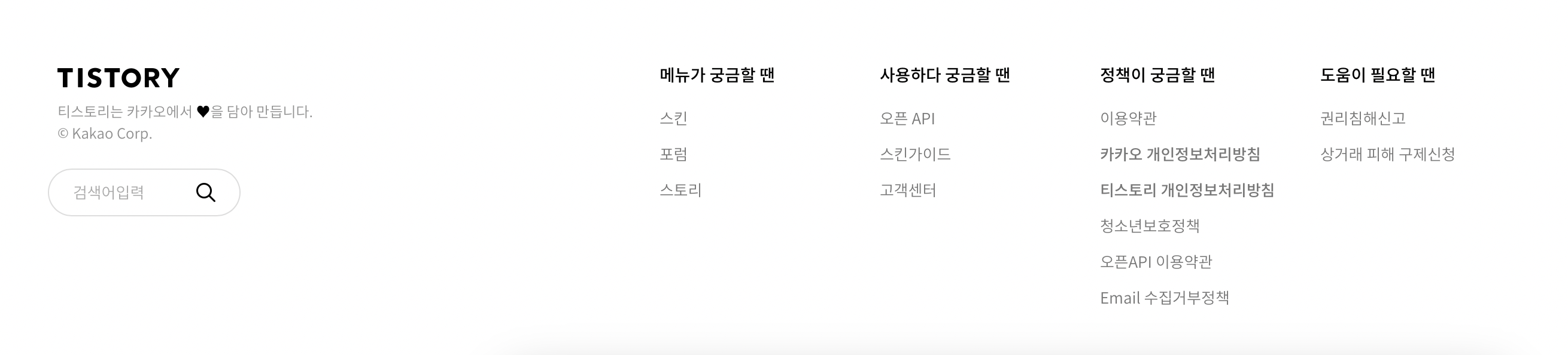 - footer: 사이트의 맨 바닥부분에 사용합니다. 주로 연락처나 제작자 정보등을 기술하는 부분입니다.