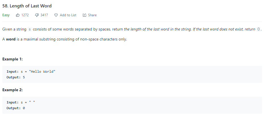 Length of Last Word - LeetCode