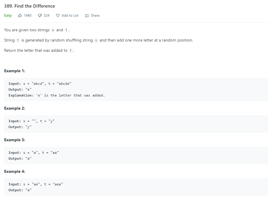 문제 출처: https://leetcode.com/problems/find-the-difference/