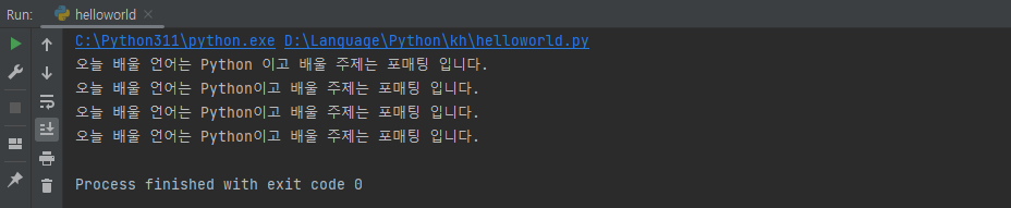 print("오늘 배울 언어는 {}이고 배울 주제는 {} 입니다.".format(str1, str2))