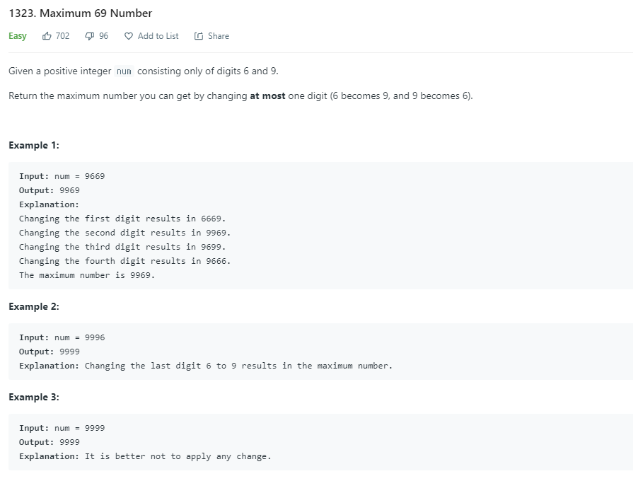 문제 출처: https://leetcode.com/problems/maximum-69-number/