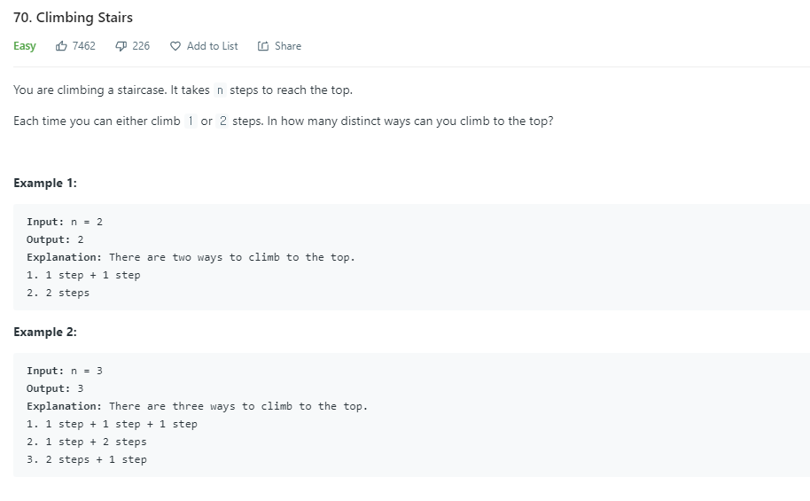 문제 출처: https://leetcode.com/problems/climbing-stairs/